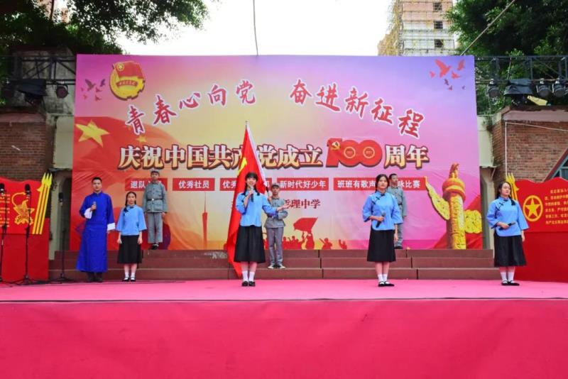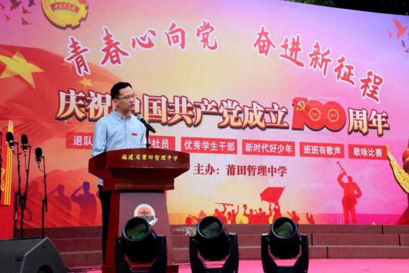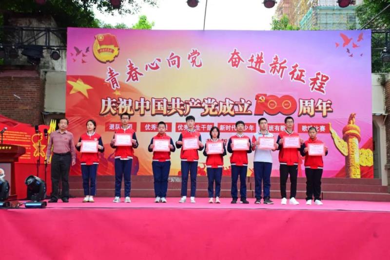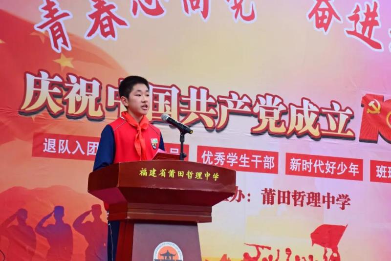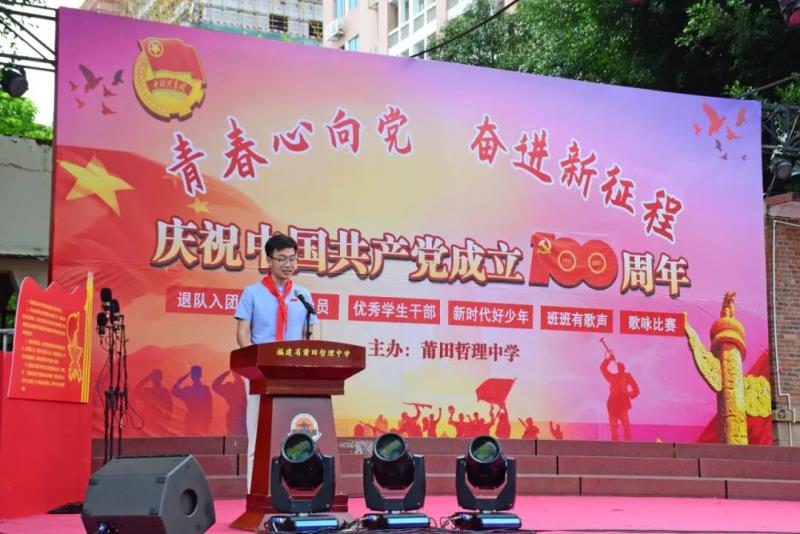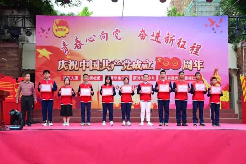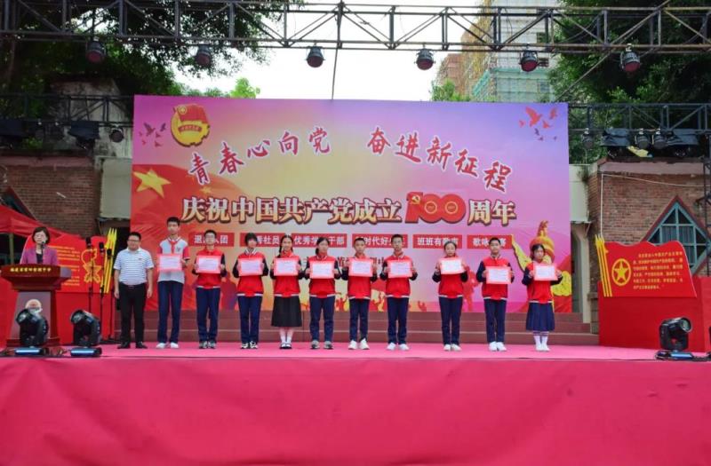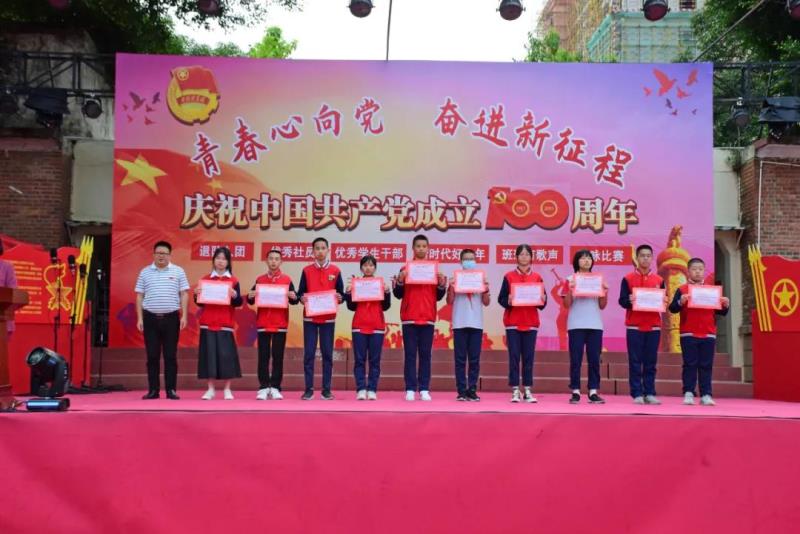 團(tuán)委副書記楊皇老師主持活動(dòng) 青春是一首歌,她撥動(dòng)著我們年輕的心弦;青春是一團(tuán)火,她點(diǎn)燃了我們沸騰的熱血;青春是一面旗幟,她召喚著我們勇敢前行。5月6日下午,我校隆重舉行“青春心向黨·奮進(jìn)新征程”新時(shí)代好少年表彰大會(huì)暨少先隊(duì)退隊(duì)入團(tuán)儀式,黨總支書記方祖禧、校長(zhǎng)陳培基等校領(lǐng)導(dǎo)與全校師生一起分享了成長(zhǎng)的喜悅。