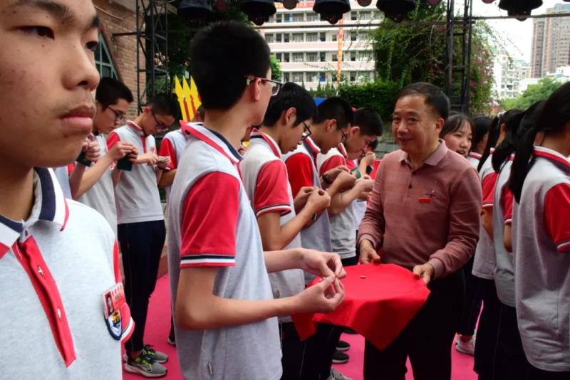 教師代表李健雄寄語 本次活動(dòng)是我校“團(tuán)、隊(duì)”儀式銜接教育的生動(dòng)體現(xiàn),為七年級(jí)學(xué)生的少先隊(duì)員生涯畫上了圓滿的句號(hào),也為他們翻開了共產(chǎn)主義青年團(tuán)這嶄新的一頁(yè),同時(shí)也將激勵(lì)著他們好好學(xué)習(xí),認(rèn)真做人,勇敢肩負(fù)起時(shí)代賦予青年的重任,開始新的征程。