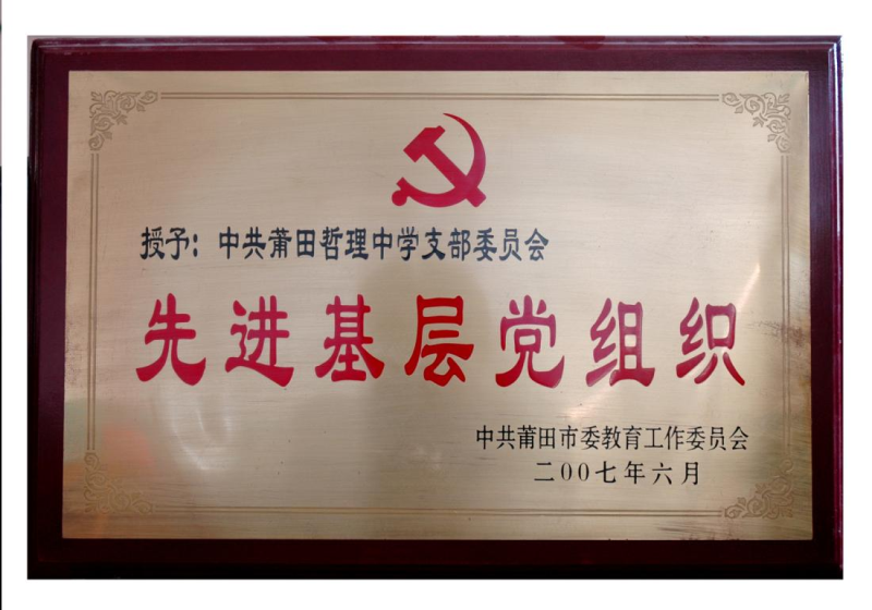 中共莆田哲理中學(xué)支部委員會于2005年11月成立,隸屬于中共莆田第二中學(xué)委員會,2019年3月升格為中共莆田哲理中學(xué)總支部委員會,下設(shè)中共莆田哲理中學(xué)第一支部委員會、第二支部委員會和第三支部委員會,成立了黨總支部辦公室。在市教工委和二中黨委的領(lǐng)導(dǎo)下,黨員們充分發(fā)揮先鋒模范作用,黨組織充分發(fā)揮戰(zhàn)斗堡壘作用,為教育強(qiáng)市做出了應(yīng)有的貢獻(xiàn),先后被評為莆田市教育系統(tǒng)先進(jìn)基層黨組織、莆田市先進(jìn)基層黨組織、全省創(chuàng)先爭優(yōu)先進(jìn)社會組織等。