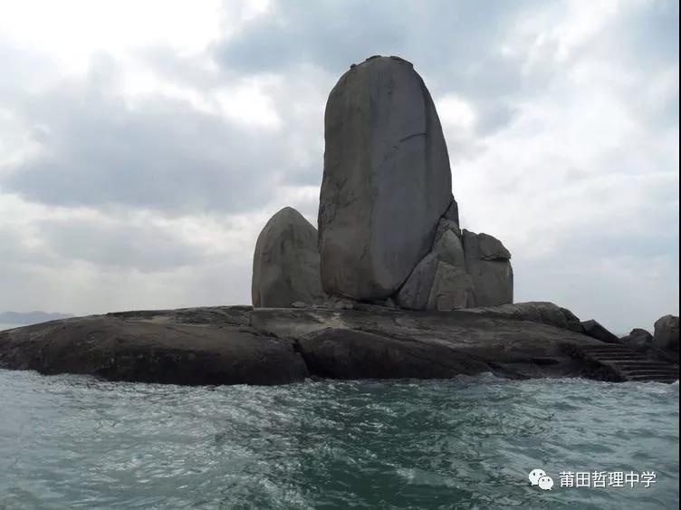 3月25日一早,女神們輕裝上陣,經(jīng)過兩個小時多的旅程終于來到了平潭最著名的自然景觀——石牌洋。一下車,大家就被隔岸迷人的風(fēng)景深深吸引住,遠(yuǎn)遠(yuǎn)望去有一個圓盤狀的大礁石,托著一高一低的兩塊碑形海蝕柱。整個礁石像一艘大船,而兩塊高高聳立的石像就像兩面鼓起的雙帆,似乎正在乘風(fēng)破浪前進。大家都在自然饋贈的美景前拍下自己的靚影,留下美好的回憶。