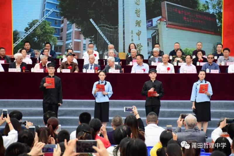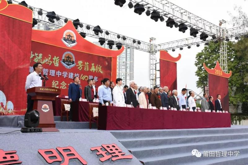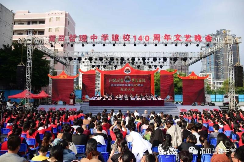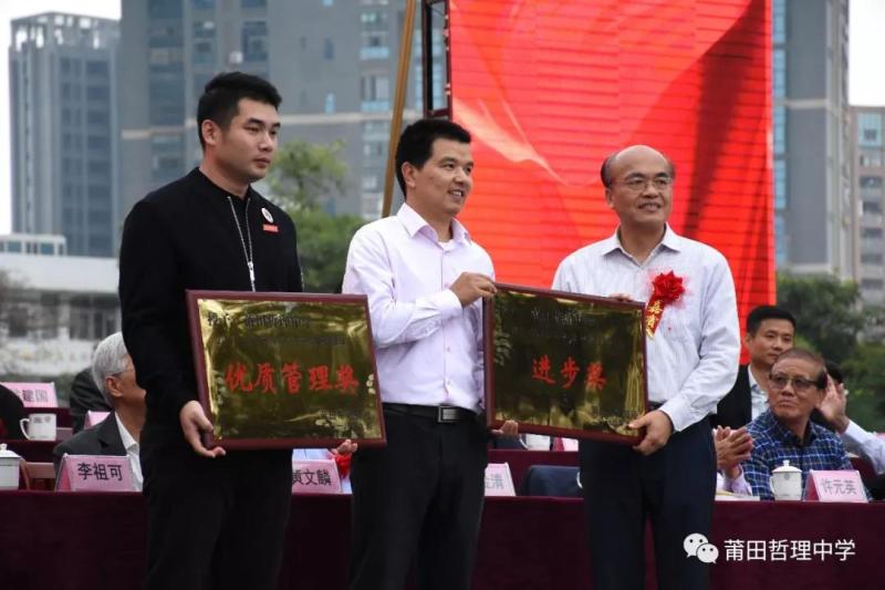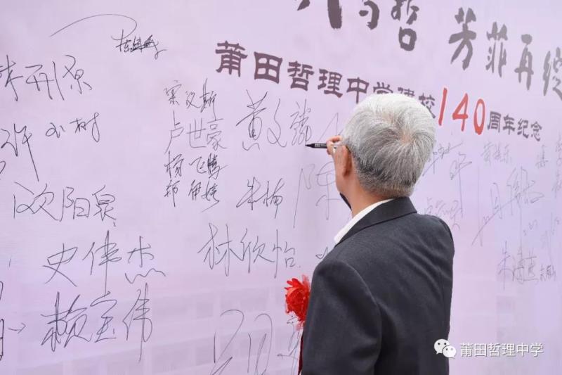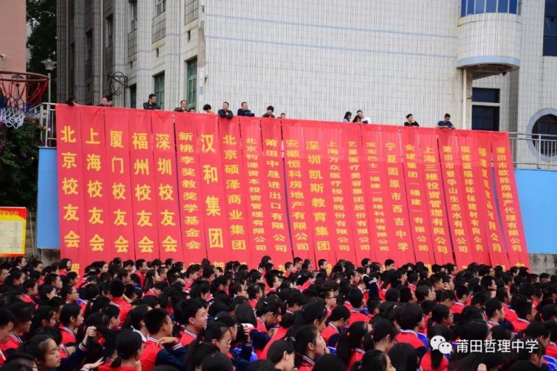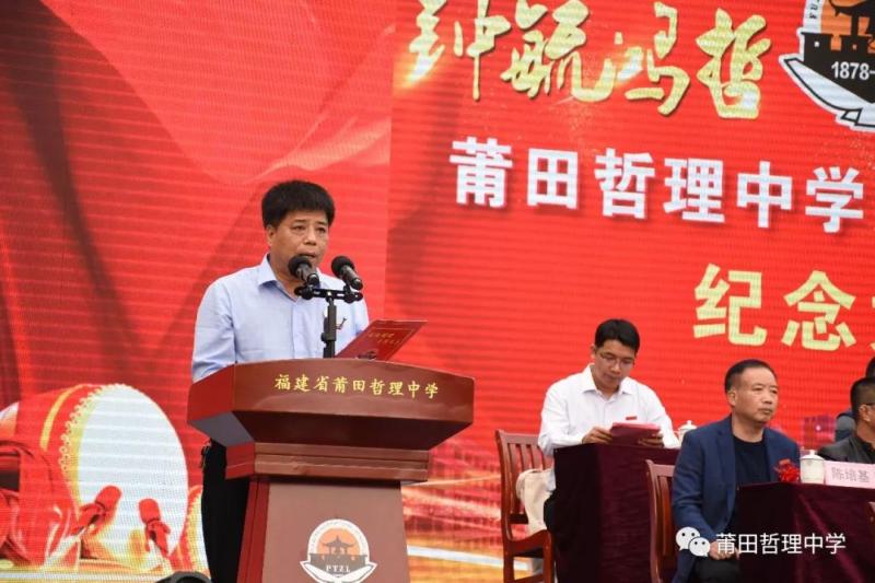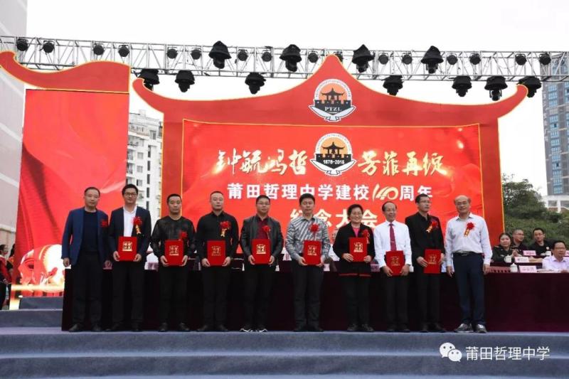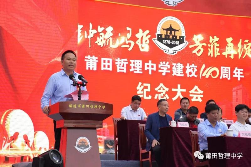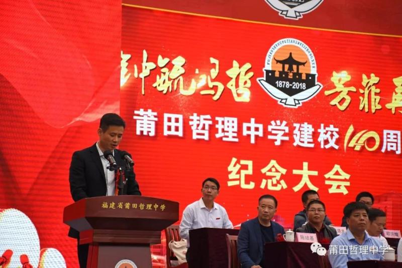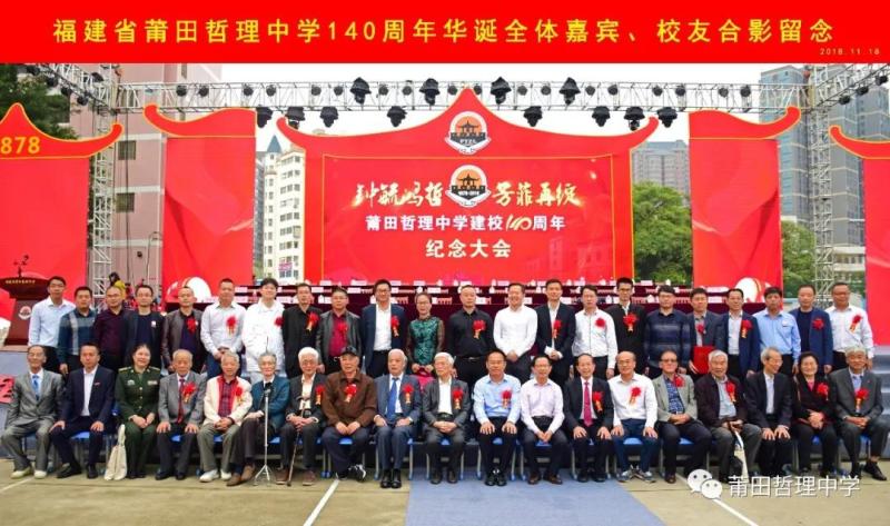 11月18日下午,莆田哲理中學(xué)運動場上彩旗招展,氣球高揚。群賢畢至,嘉賓滿座,新老學(xué)子歡聚一堂,共同慶祝莆田哲理中學(xué)建校140周年華誕。 出席大會的領(lǐng)導(dǎo)和嘉賓有:福建省原常委秘書長、省人大常委會原副主任黃文麟校友,莆田市人大副主任何金清,福建省政協(xié)原副主席李祖可校友,莆田市教工委書記、莆田市教育局局長卓金賢;北京、上海、福州、廈門及深圳等五個校友會的代表、莆田二中及哲理中學(xué)歷任領(lǐng)導(dǎo)、其他校友,以及兄弟學(xué)校代表、家長代表及全校師生共計五千多人。大會由黨支部副書記蔡建洪主持。 大會在莊嚴(yán)的國歌聲中拉開了序幕。黃潤漪、楊皇兩位老師宣讀了部分賀電賀信,接著,在校學(xué)子代表也為大會獻(xiàn)上詩朗誦——《致百卌哲理》。 接著,黨支部書記方祖禧代表學(xué)校向蒞臨本次紀(jì)念活動的領(lǐng)導(dǎo)、嘉賓和廣大校友表達(dá)了誠摯的感謝和熱烈的歡迎。他簡要回顧了學(xué)校的辦學(xué)歷史沿革,總結(jié)了復(fù)辦以來學(xué)校在教育教學(xué)等方面取得的經(jīng)驗和成績。他表示,全校師生將以慶祝140周年華誕為契機,牢牢把握市委、市政府“教育強市”的發(fā)展機遇,不斷總結(jié)辦學(xué)經(jīng)驗,勇于改革,敢于擔(dān)當(dāng),積極推進高效課堂建設(shè),全方位提升學(xué)校的辦學(xué)品味! 上海市教委人事處原處長、教授黃良漢代表校友發(fā)言。他說,母校始終是校友溫馨的港灣,母校是校友永遠(yuǎn)的牽掛。各地的校友會是母校與校友溝通的重要橋梁,校友們一定努力把校友會工作做好,努力為母校的發(fā)展添磚加瓦。最后,他表達(dá)了對母校的美好祝愿,也對在座學(xué)子提出了殷切的希望和美好的祝福。 隨后,新桃李獎教獎學(xué)基金會董事歐強代表企業(yè)界校友發(fā)言,他回顧了自己在母校就學(xué)的往事,并表達(dá)了對母校和老師的感恩之情。他希望學(xué)弟學(xué)妹們規(guī)劃好人生,學(xué)有所長,早日成為國之棟梁。 大會還舉行了捐贈儀式。卓金賢局長為踴躍奉獻(xiàn)愛心的校友、企業(yè)代表頒發(fā)了捐贈證書。緊接著,卓金賢局長分別為我校2018屆九年級和高三年級代表授予了莆田市初中教育教學(xué)優(yōu)質(zhì)管理獎和莆田市高中教育教學(xué)進步獎榮譽獎牌! 受陳惠黔副市長的委托,莆田市人大副主任何金清代表市委、市政府作重要講話。何副主任指出,莆田哲理中學(xué)在歷史上取得了輝煌的成就,為國家、社會培養(yǎng)了數(shù)以萬計的優(yōu)秀人才。他對我校在復(fù)辦后短短的時間內(nèi)取得的教育教學(xué)質(zhì)量表示了充分的肯定,希望我校能以140周年校慶為契機,全面貫徹黨的教育方針,深入貫徹全國教育大會的重要部署,牢牢把握“教育強市”的發(fā)展機遇,不斷更新教育觀念,鞏固教育成果,努力探索高效課堂建設(shè),提高精細(xì)化管理水平,實現(xiàn)學(xué)校發(fā)展的新跨越,為莆田教育強市再立新功! 紀(jì)念大會在與會領(lǐng)導(dǎo)、嘉賓、校友們的共同合影后,畫上了圓滿的句號。