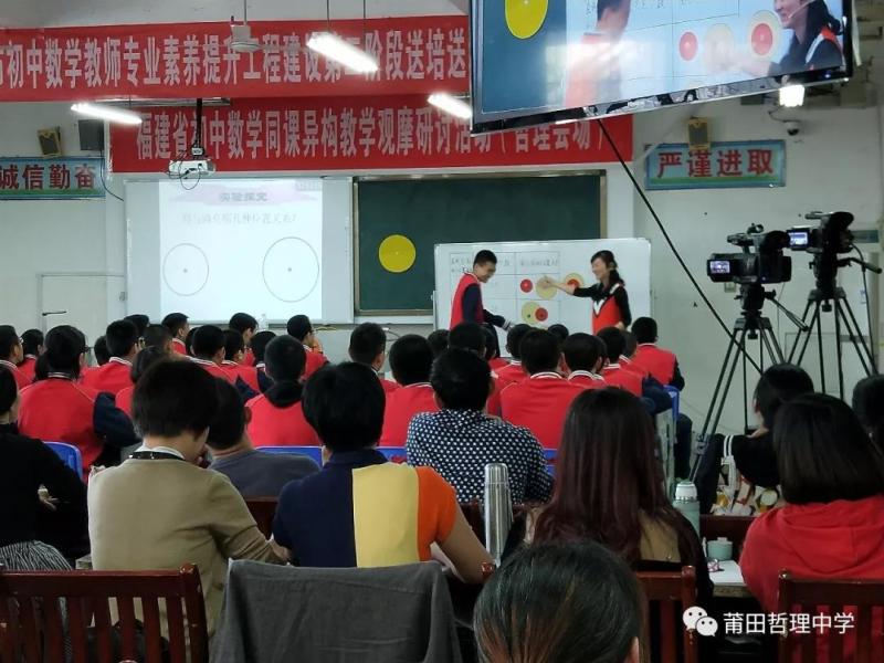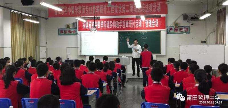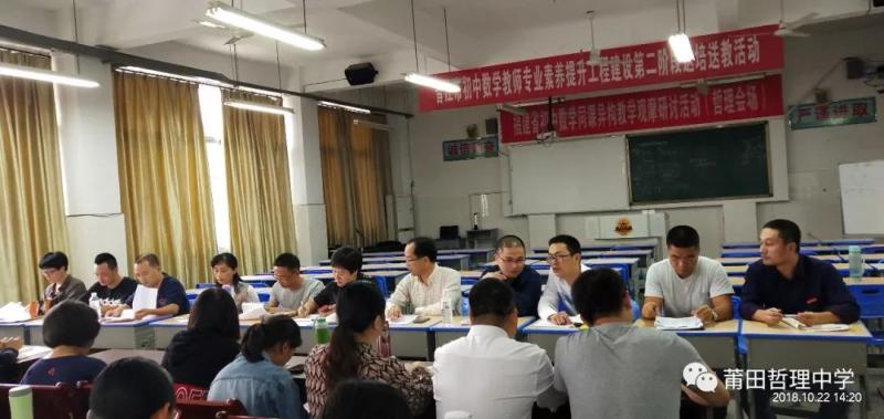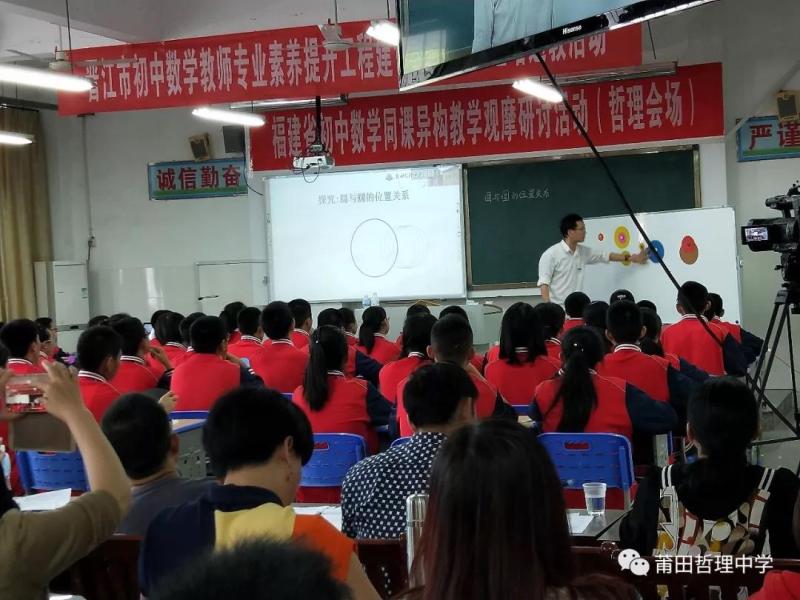 為加強地市間的教學(xué)交流,推進教育公平和均衡發(fā)展,提升我市初中數(shù)學(xué)教師專業(yè)素養(yǎng)和水平。10月22日至25日,莆田市初中數(shù)學(xué)同課異構(gòu)教學(xué)觀摩研討暨晉江市初中數(shù)學(xué)教師專業(yè)素養(yǎng)提升工程建設(shè)第二階段送培送教活動在我校舉行。 為期4天的活動中,兩校共八組16位老師通過“同課異構(gòu)”的形式展示了教師們別樣的精彩。十六節(jié)精品課分別是我校陳文武老師與晉江松熹中學(xué)黃勤程老師的《軸對稱數(shù)學(xué)活動——活動3》,徐麗琴老師與晉江陶英中學(xué)謝瑤謀老師的《二次函數(shù)中線段最值問題》,高妙真老師與晉江西濱中學(xué)萬鵬老師的《探究四點共圓的條件》,吳南老師與晉江新橋中學(xué)張勁偉老師的《整式的加減-數(shù)學(xué)活動1整式的規(guī)律探究》, 歐陽鑾容老師與晉江紫華中學(xué)陳合龍老師的《整式的化簡求值》,李迎清老師與晉江僑中施思思老師的《直線與圓的位置關(guān)系2》,唐瓏?yán)蠋熍c晉江南岳中學(xué)教師葉靈老師的《軸對稱——實驗與探究:三角形中邊與角之間的不等關(guān)系》,李建雄老師與晉江西濱中學(xué)林珊娜老師的《圓與圓的位置關(guān)系》。每一堂課都傾注了授課老師的滿腔熱情,每一堂課都閃耀著啟迪靈感的火花。學(xué)生積極參與課堂活動,主動思考、探究、展示,思維在碰撞中擦出火花。 每天下午的評課大家各抒己見,交流切磋,博彩眾長,大膽分享自己獨特的見解。福建師范大學(xué)的柯躍海教授的點評總是那么到位,他每一個教學(xué)細(xì)節(jié)都做出很好的剖析與概括,同時,對于在課堂中出現(xiàn)的不足也提出中肯的建議,讓每位老師都受益匪淺。 此次的活動,課堂精彩紛呈,受到教師與學(xué)生們的一致好評,達到了預(yù)期的效果,不但為教師的鍛煉成長提供了平臺,也為教師間互助互學(xué)、交流研討創(chuàng)造了機會,為學(xué)校教師提供了良好的學(xué)習(xí)范例,進一步提升我校教師的教學(xué)能力,推動我校教育教學(xué)質(zhì)量水平的整體提高。
