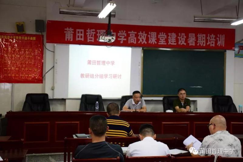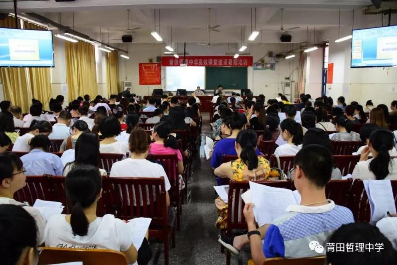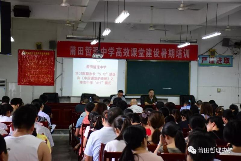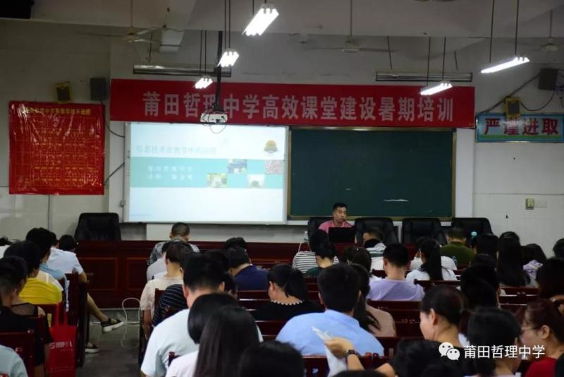 為貫徹落實(shí)《莆田市教育局關(guān)于在中小學(xué)校推進(jìn)高效課堂工作的通知》的文件精神,深入學(xué)習(xí)陳副市長“5·12”及“6·30”重要講話精神,構(gòu)建我校高效課堂模式,實(shí)現(xiàn)“提質(zhì)增效”的課堂教學(xué)目標(biāo),依照莆田市教育局暑期培訓(xùn)統(tǒng)一部署,我校于7月15日至7月17日對全校教師進(jìn)行為期三天的高效課堂建設(shè)暑期培訓(xùn)。此次培訓(xùn)由陳培基校長主持,全校初、高中共有300名教師參加。 此次培訓(xùn)內(nèi)容充實(shí),有高效課堂解讀、高效課堂與信息技術(shù)高度融合的講座及高效課堂示范課演示等環(huán)節(jié),還有各教研組對高效課堂建設(shè)實(shí)施方案的探討、新學(xué)年教學(xué)計(jì)劃的制定及高效課堂導(dǎo)學(xué)案模板設(shè)計(jì)研討等內(nèi)容。各位教師高度重視,研討氛圍濃厚。