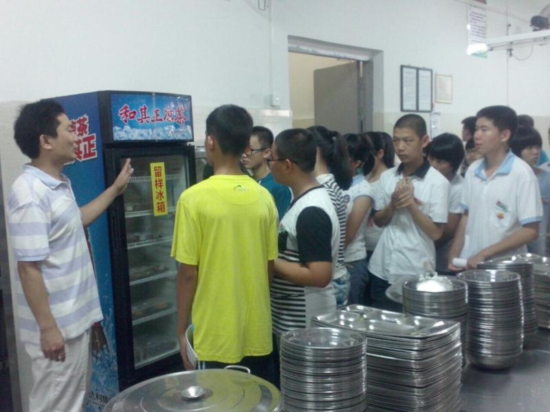 近日,哲理中學(xué)組織開(kāi)展“食品安全開(kāi)放日”活動(dòng),邀請(qǐng)部分學(xué)生由總務(wù)處副主任譚道勇老師帶領(lǐng)到學(xué)校食堂實(shí)地參觀,讓學(xué)生了解我校食堂的加工制作過(guò)程,加強(qiáng)交流,促進(jìn)理解,為我校師生共同做好食品安全工作奠定基礎(chǔ)。