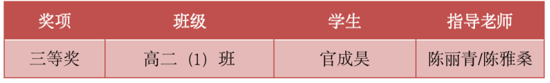 在2022年全國高中生物聯(lián)賽福建省莆田賽區(qū)比賽中,我校官成昊同學(xué)獲獎,具體獲獎情況如下: