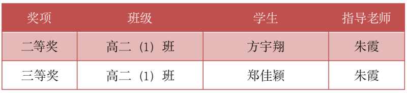 在2022年全國高中化學(xué)聯(lián)賽福建省莆田賽區(qū)比賽中,我校方宇翔、鄭佳穎兩位同學(xué)獲獎,具體獲獎情況如下: