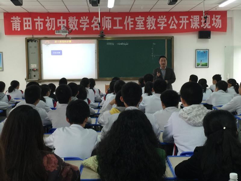 為推進(jìn)莆田市初中數(shù)學(xué)教學(xué)改革,深入開展中學(xué)數(shù)學(xué)教學(xué)研究,發(fā)揮名師的師范、引領(lǐng)、指導(dǎo)、輻射作用,由莆田市進(jìn)修學(xué)院數(shù)學(xué)組負(fù)責(zé)人蔡德清領(lǐng)銜的莆田市初中數(shù)學(xué)蔡德清名師工作室教研活動4月14日在我校舉行。 我校數(shù)學(xué)組陳文武老師進(jìn)行《一次函數(shù)與方程、不等式》現(xiàn)場公開課教學(xué),我校數(shù)學(xué)組李迎清進(jìn)行《初中數(shù)學(xué)中的哲學(xué)教育》專題講座。最后,初中數(shù)學(xué)名師工作室負(fù)責(zé)人蔡德清進(jìn)行《數(shù)學(xué)課題研究與論文寫作》專題講座及活動總結(jié)。 本次活動是基于福建省教育科學(xué)“十二五”規(guī)劃2015年度課題《初中數(shù)學(xué)文化的教學(xué)實踐》的數(shù)學(xué)教學(xué)觀摩及講座活動。初中數(shù)學(xué)(蔡德清)名師工作室成員、課題組成員及市直部分?jǐn)?shù)學(xué)教師60多人參加此次活動。