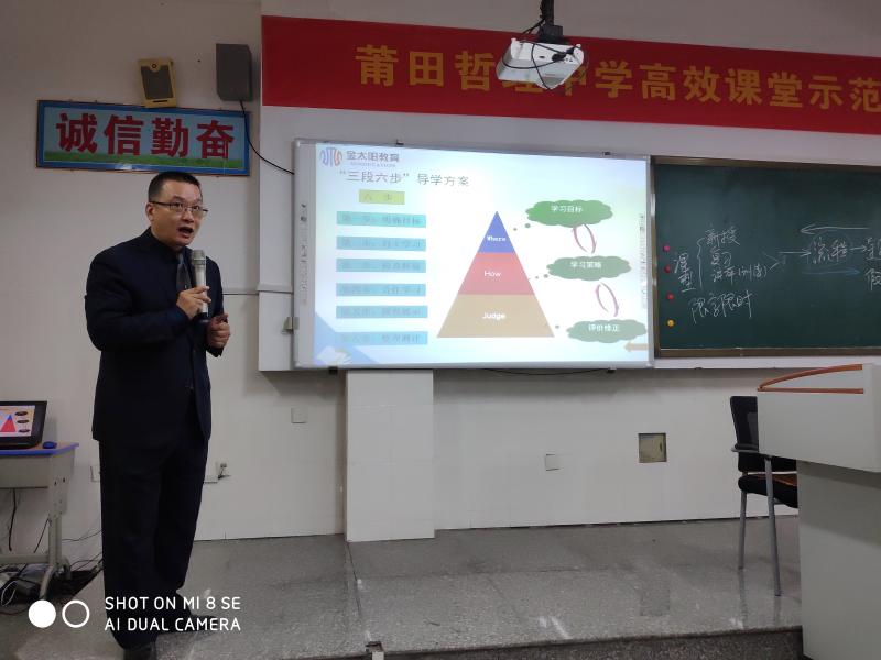 核心素養(yǎng)下高效課堂的理念與實(shí)操 在接下來長達(dá)三個(gè)半小時(shí)的講座中,幸興專家緊扣核心素養(yǎng)和高效課堂模式,用深入淺出的語言為我們明確了高效課堂模式的流程操作。明確理念只有轉(zhuǎn)化為實(shí)踐操作方法才能落地生根,可以借鑒他人成熟的課改經(jīng)驗(yàn),將復(fù)雜的問題簡單化,簡單的文體流程化。要推進(jìn)高效課堂,班級(jí)建設(shè)小組建設(shè)是關(guān)鍵,教師的三備二研是支撐,只有統(tǒng)一評(píng)價(jià)、統(tǒng)一目標(biāo)、人人出力共榮共商才能將內(nèi)耗降低到最小,將個(gè)人智慧與集體決策打磨到最佳。“細(xì)微處見真功夫”講座內(nèi)容細(xì)到對(duì)學(xué)生的習(xí)慣的養(yǎng)成、學(xué)習(xí)流程、學(xué)習(xí)方法的熟悉。也傳授了語文朗讀、詠誦、吟誦和歌訣法,寓教于樂把音樂和傳統(tǒng)文化有機(jī)融合。 幸老師專業(yè)到位的講解幽默風(fēng)趣的言語,讓老師們感受到了深厚的文學(xué)素養(yǎng)和人文底蘊(yùn),博得大家的陣陣掌聲。 最后的互動(dòng)環(huán)節(jié),由本校的老師以備課組為單位自行設(shè)計(jì)課堂教學(xué)路線圖。從目標(biāo)到達(dá)標(biāo),即從起點(diǎn)到終點(diǎn),連接起來就是一根線,中間設(shè)立“站點(diǎn)”,再配上時(shí)間,即是構(gòu)建“路線圖”,老師們積極參與,群策群力,七年高一備課組長吳雪欽老師、扶美花老師、胡琳老師分別上去展講,幸老師一一指出優(yōu)缺點(diǎn)。 通過本次講座,廣大教師進(jìn)一步明確了高效課堂的理念和實(shí)操,為全面提高教學(xué)質(zhì)量奠定了堅(jiān)實(shí)的基礎(chǔ)。