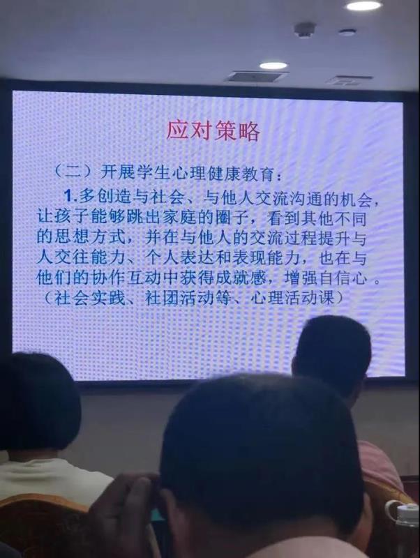 8月1日上午,國(guó)家二級(jí)心理咨詢師,南昌市未成年人心理健康輔導(dǎo)中心主任何靜麗老師為我們傳授原生家庭教育缺失的學(xué)生的轉(zhuǎn)化策略。孩子是復(fù)印件,家長(zhǎng)是原件,復(fù)印件出問(wèn)題要找原件,問(wèn)題學(xué)生的轉(zhuǎn)化是學(xué)校德育工作的重點(diǎn)和難點(diǎn),何老師系統(tǒng)分析原生家庭類型對(duì)孩子成長(zhǎng)的影響,從心理學(xué)教育學(xué)的角度為苦惱困惑的班主任指點(diǎn)迷津,按照馬斯洛的五個(gè)需求層次理論幫助我們理解學(xué)生的需要,更好的指導(dǎo)學(xué)生走出迷茫,健康成長(zhǎng)。
