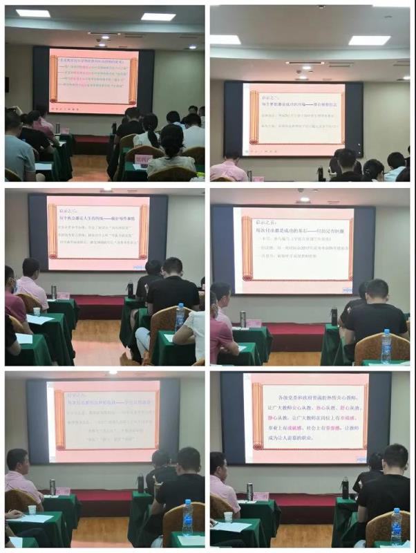 午休之后,大家齊聚會(huì)議室,認(rèn)真聽(tīng)取了碩士研究生、現(xiàn)任宜春市教育體育局黨委委員、副局長(zhǎng)余兆輝關(guān)于《我的教育故事對(duì)教師成長(zhǎng)的啟示》的專題講座。“三寸粉筆,三尺講臺(tái)系國(guó)運(yùn);一顆丹心,一生秉燭鑄民魂?!庇嗑珠L(zhǎng)用習(xí)近平總書(shū)記的囑托詮釋了教師職業(yè)的神圣感和重要性,再結(jié)合自身的教育故事,對(duì)教師成長(zhǎng)提出了六個(gè)寶貴的經(jīng)驗(yàn)啟示: 1.每顆愛(ài)心都是育人的種子——愛(ài)是教師之本。 2.每個(gè)夢(mèng)想都是成功的開(kāi)端——要有理想信念。 3.每個(gè)機(jī)會(huì)都是人生的歷練——做好每件事情。 4.每個(gè)崗位都是成長(zhǎng)的平臺(tái)——珍惜每次機(jī)會(huì)。 5.每次付出都是成功的基石——付出定有回報(bào)。 6.每次反思都有意外的收獲——學(xué)會(huì)反思改進(jìn)。