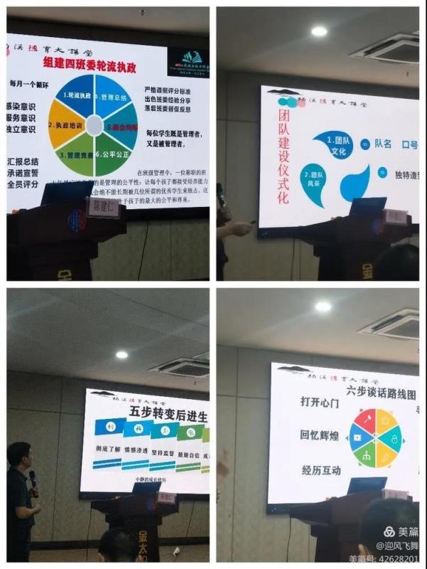 中午簡單休整后,我們來到了江西省屬重點中學(xué)南昌外國語學(xué)院。在參觀了與眾不同、別具一格的美麗校園后,大家來到學(xué)校的報告廳,認(rèn)真學(xué)習(xí)聽取了南外政教處主任關(guān)于他們學(xué)校德育教育特色介紹,接著擢英和哲理兩校的帶隊領(lǐng)導(dǎo)也就德育管理的提升點作了深入交流,在座的班主任也紛紛提出工作中的困惑點并得到積極回應(yīng),整個會場氣氛熱烈,成果喜人!