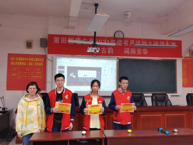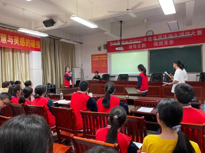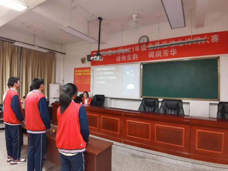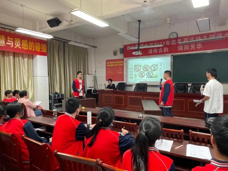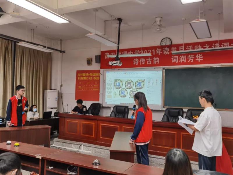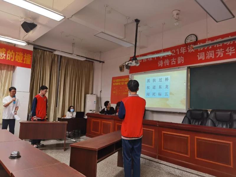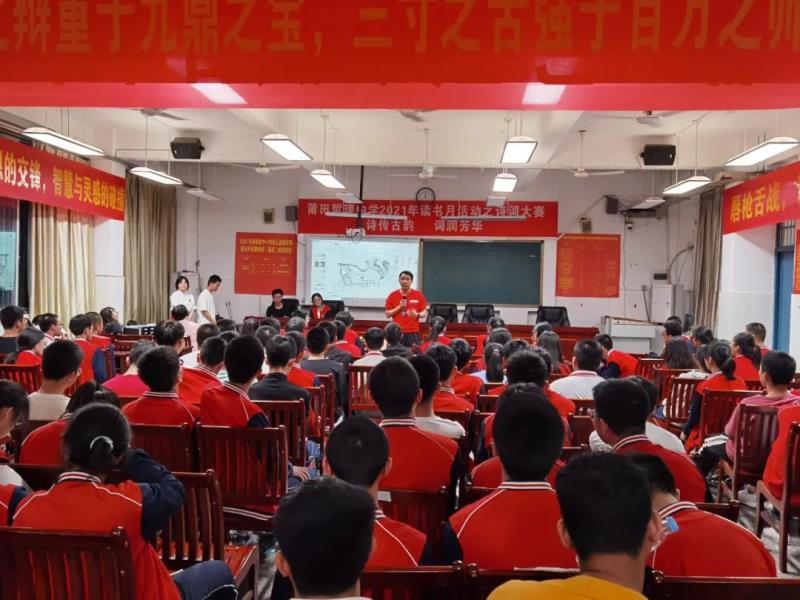 “賞中華詩(shī)詞,尋文化基因,品生活之美?!?月27日晚,一場(chǎng)以“詩(shī)傳古韻、詞潤(rùn)芳華”為主題的詩(shī)詞大賽在我校高一年級(jí)成功舉辦。此次詩(shī)詞大賽是我校2021年讀書月系列活動(dòng)之一,旨在營(yíng)造“詩(shī)香校園”的良好氛圍,進(jìn)一步推進(jìn)全民閱讀,并用集知識(shí)、娛樂、競(jìng)賽為一體的綜合性學(xué)習(xí)活動(dòng)來獻(xiàn)禮黨的百年華誕?;顒?dòng)由鄭佳穎、陳泓名同學(xué)擔(dān)任主持人,學(xué)校黨總支副書記蔡建洪、黃潤(rùn)漪,團(tuán)委副書記楊皇,語(yǔ)文組組長(zhǎng)范秀植,高一年段長(zhǎng)王金伙等領(lǐng)導(dǎo)、老師出席。