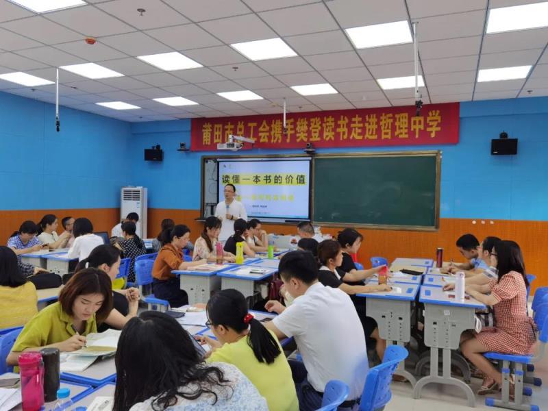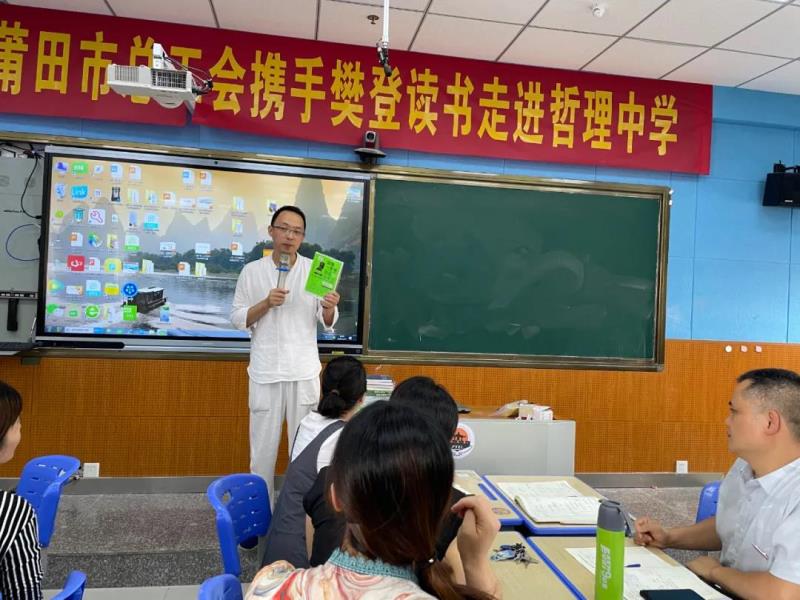 最美人間四月天,唯有閱讀暖人心。在各學(xué)科組如火如荼地開展閱讀交流活動(dòng)之際,莆田市總工會(huì)攜手樊登讀書走進(jìn)我校,開展閱讀交流活動(dòng)。本次閱讀交流活動(dòng)以“讀懂一本書的價(jià)值”為主題,由樊登讀書莆田運(yùn)營中心負(fù)責(zé)人冉運(yùn)洲擔(dān)任主講,語文組負(fù)責(zé)組織、主持,我校“梅山映雪”讀書會(huì)中其他學(xué)科組也派代表出席,全場共計(jì)40余人參加。