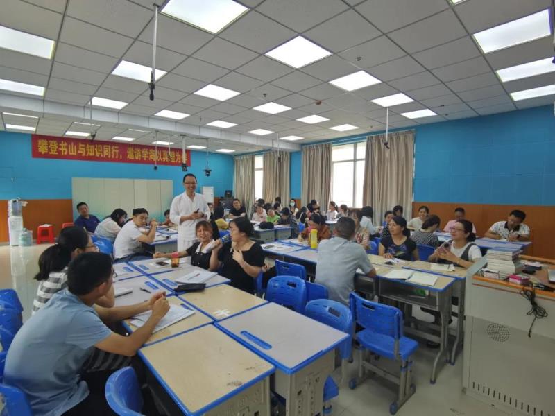 閱讀點(diǎn)亮生活,交流碰撞火花。在為期近兩個(gè)小時(shí)的閱讀交流活動(dòng)中,冉運(yùn)洲先生結(jié)合個(gè)人閱讀體驗(yàn)和推廣全民閱讀的實(shí)踐活動(dòng)經(jīng)驗(yàn),以“讀懂一本書的價(jià)值”為中心,以“為什么要讀書、讀什么書、如何讀懂一本書、怎么讀更有價(jià)值”為主線,采用小組合作交流的方式,先后安排了“用一句話概括讀書好處”的小組交流活動(dòng)、“讀書有用論/無用論”的分組辯論活動(dòng)、“羅列并歸納所讀過書目”的個(gè)人展示活動(dòng)和“讀不懂怎么辦”的集體探究等環(huán)節(jié),并特別強(qiáng)調(diào)了閱讀中存在的“五大誤區(qū)”、選書的“TIPS ”原則、“每一本書都有它的使命”、“讀書筆記有學(xué)問”等關(guān)鍵問題。真實(shí)的經(jīng)歷,清晰的思路,豐富的形式,充實(shí)的內(nèi)容,新穎的觀點(diǎn),時(shí)不時(shí)讓現(xiàn)場的教師們或唇槍舌戰(zhàn),或思維碰撞,或心靈交流,或激情鼓掌,或頻頻點(diǎn)贊,或陷入沉思……