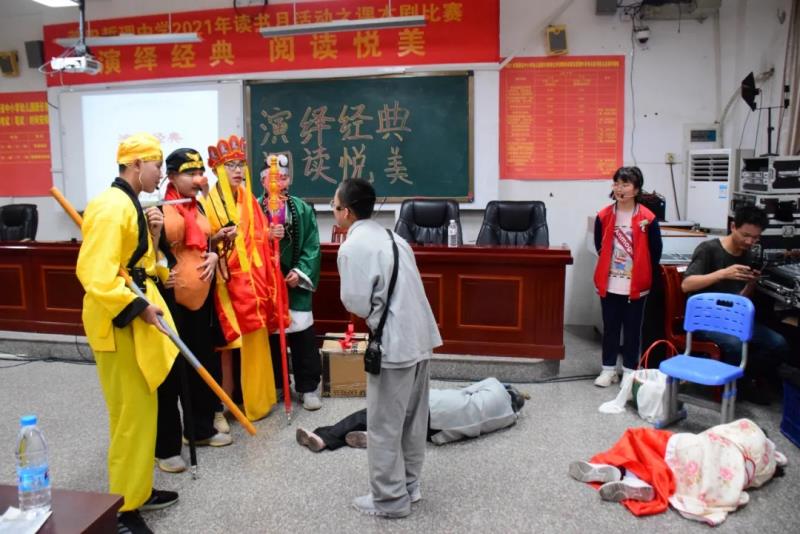 比賽活動由七年級參加,參加比賽的課本劇題材廣泛,有教材中的名家名作,也有從經(jīng)典名著里精選的情節(jié)。學生們自選自編自演,老師們精心指導,《半截蠟燭》《三顧茅廬》《唐雎不辱使命》《范進中舉》《荊軻刺秦王》《變色龍》《皇帝的新裝》等一個個經(jīng)典而又精彩的故事一一呈現(xiàn)在觀眾眼前。展演過程中,學生們用詼諧的語言、靈動活潑的肢體展現(xiàn)了一個個鮮活的人物,一段段精彩的情節(jié),讓整場比賽高潮迭起、掌聲雷動。