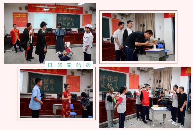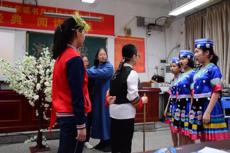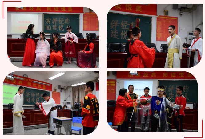此次比賽,各班都精心準備,花樣百出。有構思精巧的故事情節(jié),有場面宏大的背景和令人驚艷的視覺特效,有花樣繁多的道具服裝,也有深刻而有內(nèi)涵的主題,讓評委和觀眾都深深地沉醉其中。滄桑馱載歲月遠去,一方小小的舞臺,凝聚著跨越千年而來的人事,演繹著“戲如人生、人生如戲”的悲歡離合,喜怒哀樂……