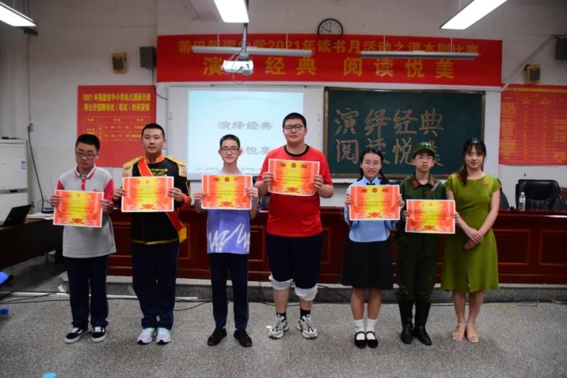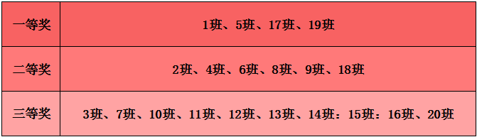 比賽雖然已經(jīng)落下了帷幕,但它的余音余韻卻仍然縈繞在心頭,讓人回味無窮。此次比賽是我校讀書月活動的收官之作,它不僅豐富了學生們的課余生活,增進了彼此間的友誼,同時也增強了學生的人文素養(yǎng),為豐富校園文化添上濃墨重彩的一筆。 獲獎班級: