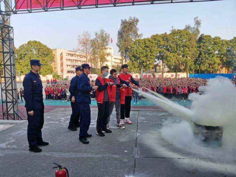 ▲學(xué)生使用消防設(shè)備進(jìn)行滅火演練▲