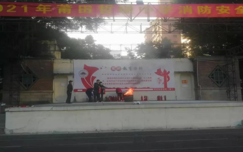 ▲教師使用消防設(shè)備進(jìn)行滅火演練▲