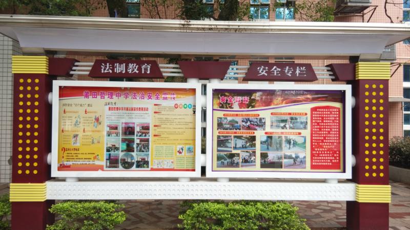 哲理中學重視學生安全教育工作,除定期開展各項安全教育工作外,學校在校內(nèi)還設(shè)有專屬宣傳欄進行法制教育、安全教育從而使廣大師生的守法、安全意識得到了進一步增強,法律及安全知識得到了進一步充實,自護自救能力得到了進一步提高。