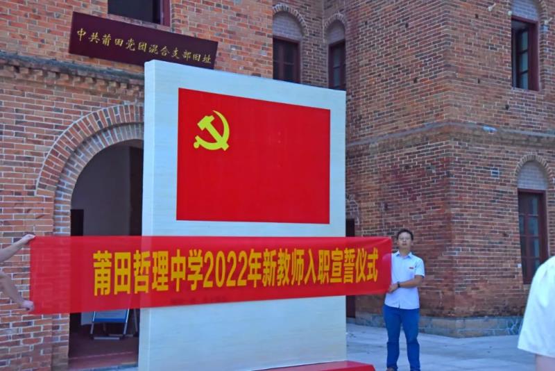 原莆田二中黨總支書記、我校老校長涂雨為新教師講述了他在高中求學時住在鐘樓的難忘經(jīng)歷,并用陳國柱的故事激勵新教師,用青春的一腔熱血投入到教師事業(yè)中,賡續(xù)哲理鐘樓的紅色精神。 近三十名新入職教師在黃潤漪副書記的帶領(lǐng)下,右手緊握拳頭莊嚴宣誓:我是光榮的人民教師,我宣誓:忠誠人民教育事業(yè)……為建設(shè)莆田教育強市,為中華民族偉大復興貢獻全部智慧和力量!