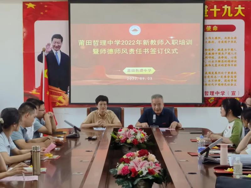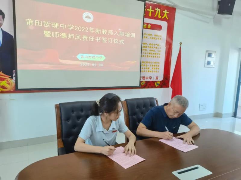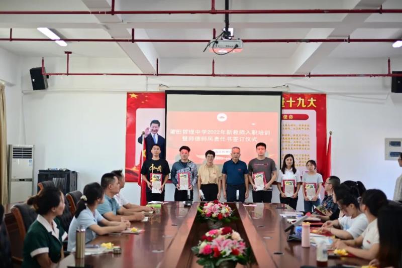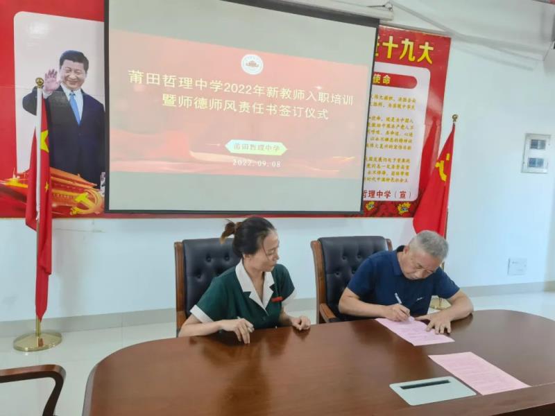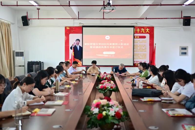 為使新教師能迅速適應(yīng)自己的崗位工作,熟悉各項(xiàng)工作要求,9月8日下午,我校舉行了新教師入職培訓(xùn)暨師德師風(fēng)責(zé)任書(shū)簽訂儀式,校長(zhǎng)陳培基、工會(huì)主席林兆海出席活動(dòng)?;顒?dòng)由黃潤(rùn)漪副書(shū)記主持,全體新教師參與。