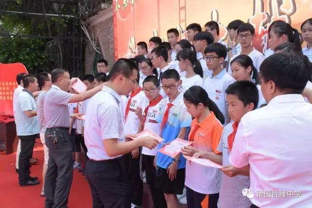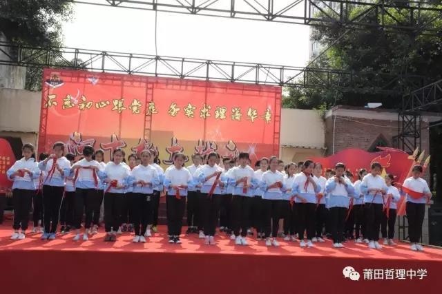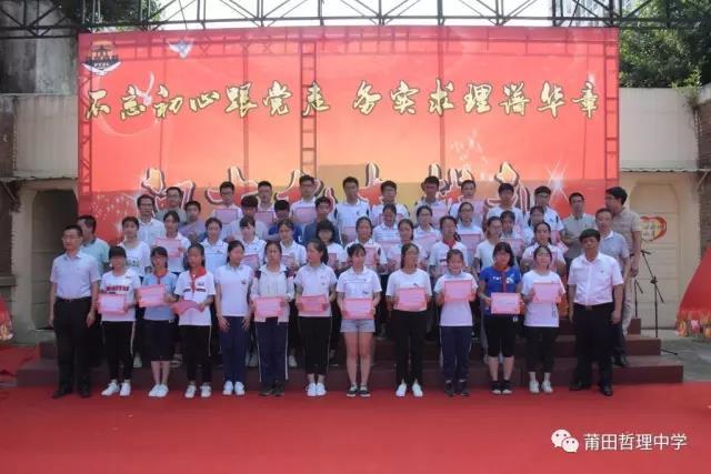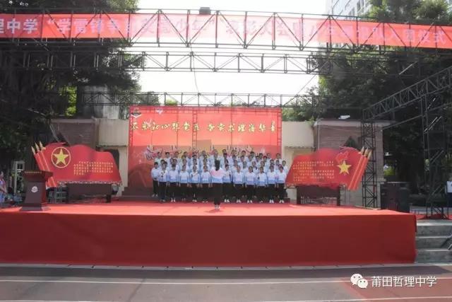 為弘揚(yáng)愛(ài)國(guó)、民主、科學(xué)的“五四”精神,在同學(xué)中形成勇于爭(zhēng)先、樂(lè)于奉獻(xiàn)的良好風(fēng)氣,增強(qiáng)團(tuán)組織的凝聚力和戰(zhàn)斗力,促進(jìn)學(xué)生健康成長(zhǎng),營(yíng)造良好的校園文化氛圍,5月14日下午,我校在隆重召開“學(xué)雷鋒爭(zhēng)當(dāng)美德少年”五四表彰大會(huì)暨八年級(jí)退隊(duì)入團(tuán)宣誓儀式。 方祖禧書記、陳培基校長(zhǎng)等校領(lǐng)導(dǎo)出席了大會(huì),蒞臨本次活動(dòng)的嘉賓還有市直機(jī)關(guān)團(tuán)工委書記吳健、家長(zhǎng)委員會(huì)代表郭明海先生及八百多名家長(zhǎng)。大會(huì)由團(tuán)委副書記兼少先隊(duì)總輔導(dǎo)員楊昆主持,全校四千多名學(xué)子參加了這個(gè)神圣的儀式。 大會(huì)在莊嚴(yán)的升旗儀式中拉開了序幕,黨支部副書記蔡建洪致開幕詞,蔡副書記首先對(duì)獲獎(jiǎng)同學(xué)表示祝賀,對(duì)辛苦培養(yǎng)的老師和家長(zhǎng)表示感謝;蔡副書記指出,長(zhǎng)期以來(lái),我校學(xué)子積極踐行愛(ài)學(xué)習(xí)、愛(ài)勞動(dòng)、愛(ài)祖國(guó)的價(jià)值追求,涌現(xiàn)了一批文明有禮、自強(qiáng)自立、誠(chéng)實(shí)守信、尊老愛(ài)親、助人為樂(lè)、盡責(zé)奉獻(xiàn)的少年典型,充分展示出我校良好的精神風(fēng)貌和道德風(fēng)尚。此次受表彰的美德少年用實(shí)際行動(dòng)踐行社會(huì)主義核心價(jià)值觀,為莆田創(chuàng)建全國(guó)文明城市貢獻(xiàn)自己的一份力量,為迎接黨的十九大的勝利召開獻(xiàn)禮。他希望同學(xué)們要以受表彰的優(yōu)秀團(tuán)干、團(tuán)員和“美德少年”為榜樣,珍惜時(shí)間,努力學(xué)習(xí),時(shí)刻用團(tuán)員的要求和“雷鋒榜樣”來(lái)規(guī)范自己,積極踐行社會(huì)主義核心價(jià)值體系,在今后的人生征途中用努力奮斗來(lái)為父母爭(zhēng)光,為學(xué)校爭(zhēng)光,為祖國(guó)的事業(yè)添磚加瓦。隨后,許國(guó)平副校長(zhǎng)、李迎清副校長(zhǎng)分別宣讀了獲得2016-2017學(xué)年美德少年和優(yōu)秀學(xué)生名單,出席大會(huì)的領(lǐng)導(dǎo)和嘉賓為獲獎(jiǎng)同學(xué)頒發(fā)榮譽(yù)證書。 退隊(duì)入團(tuán)儀式上,同學(xué)們?cè)俅沃販亓松傧汝?duì)隊(duì)歌,最后一次出隊(duì)旗并在莊嚴(yán)的隊(duì)旗下敬起熟悉的隊(duì)禮,最后,同學(xué)們帶著不舍解下了胸前的紅領(lǐng)巾,認(rèn)真地折疊、珍藏起來(lái)。接下來(lái),在楊昆老師的帶領(lǐng)下,新團(tuán)員代表面向團(tuán)旗進(jìn)行了神圣的入團(tuán)宣誓儀式,同學(xué)們用最洪亮的聲音,表明了自己為共產(chǎn)主義事業(yè)而奮斗的決心。之后,新團(tuán)員代表何嘉豪代表所有新團(tuán)員,明確了團(tuán)員責(zé)任,表示要積極履行團(tuán)員義務(wù),用實(shí)際行動(dòng)表明自己無(wú)愧于共青團(tuán)員這個(gè)光榮的稱號(hào)。 孩子的成長(zhǎng)離不開家長(zhǎng)的殷殷期盼和老師的無(wú)私關(guān)愛(ài),學(xué)校家委會(huì)代表郭明海先生代表全體家長(zhǎng)宣讀“致子女的一封信”,殷殷之情令人動(dòng)容,八年級(jí)段長(zhǎng)胡俊杰老師也代表全體教師對(duì)新團(tuán)員們提出了新的要求與希望。 今天恰逢母親節(jié),新團(tuán)員們用一篇配樂(lè)詩(shī)朗誦——孝心無(wú)價(jià)為母親節(jié)獻(xiàn)上一份厚禮,飽含感情的朗誦感動(dòng)了在場(chǎng)的家長(zhǎng),也表明他們明確了成長(zhǎng)的責(zé)任;而收集“寄給十年后的我”一封信并現(xiàn)場(chǎng)封存,則展示出他們勇挑重任的決心。 “我們是五月的花海,用青春擁抱時(shí)代;我們是初升的太陽(yáng),用生命點(diǎn)燃未來(lái)……”活動(dòng)在雄壯激昂的團(tuán)歌聲中,圓滿的落下了帷幕,八年級(jí)各班紛紛來(lái)到主席臺(tái)前莊重地拍下了成長(zhǎng)紀(jì)念冊(cè)。 儀式雖然結(jié)束了,但團(tuán)員青年的火熱激情卻正在生成,就讓我們以青春的名義繼續(xù)前行,以青春的號(hào)角砥礪斗志,在踐行社會(huì)主義核心價(jià)值體系的道路上唱出青春最美的旋律!