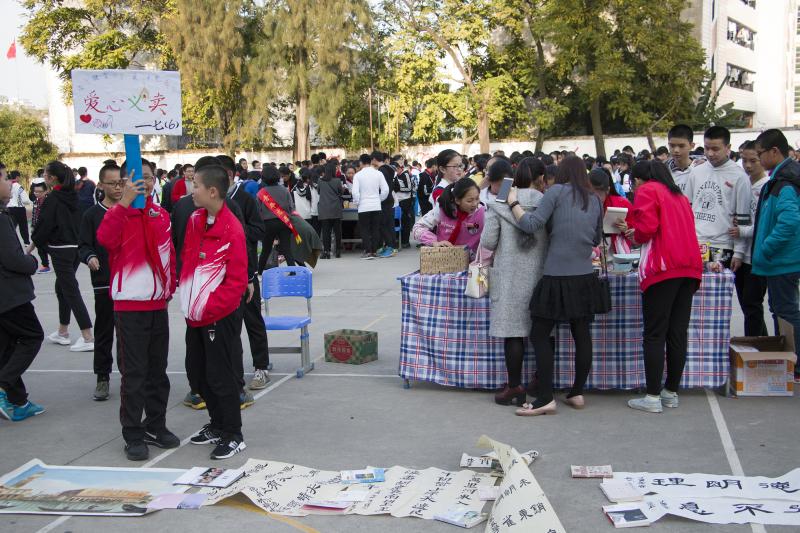 義賣現(xiàn)場熱鬧非凡,本次活動設(shè)攤點(diǎn)62個(gè),同學(xué)們競相展示自己的“產(chǎn)品”吸引“顧客”來購買。此次義賣的物品,應(yīng)有盡有,如學(xué)習(xí)用具、書籍、生活用品、書畫作品、手工制作,更有“千人競技比賽”優(yōu)秀作品等。 同學(xué)們的營銷方式也大膽奇特,“設(shè)攤點(diǎn)叫賣”、“流動商家”“比賽贏獎品”,學(xué)生會更是“大顯身手”:話劇社的“鬼屋”、美食社的手工餅干、奶茶、音樂舞蹈社的“點(diǎn)歌助唱”、動漫社和魔方社的cosplay、更有DIY雕飾、飛鏢氣球、套環(huán)、乒乓球墊球、象棋殘局、籃球單挑等“大挑戰(zhàn)”。 大家表示這樣活動不僅能“義不容辭學(xué)雷鋒,賣的善款獻(xiàn)愛心”,也讓同學(xué)們懂得合理消費(fèi),提高自主管理、組織能力和團(tuán)隊(duì)合作精神。