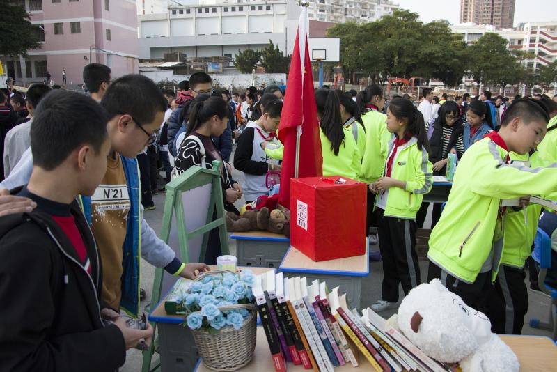 | “現(xiàn)場制作,保質(zhì)保量!”“走過路過不要錯(cuò)過,跳樓價(jià)啦!”……3月27日下午,在哲理中學(xué)校園內(nèi),仿佛自由市場,各種叫賣聲此起彼伏。學(xué)生們正“各顯神通”,通過“愛心義賣”活動向“莆田市特殊教育學(xué)?!焙汀靶銕Z區(qū)愛心書屋”獻(xiàn)愛心。老師、同學(xué)們及部分家長們近3200人來到現(xiàn)場,慷慨解囊表示支持。