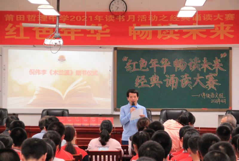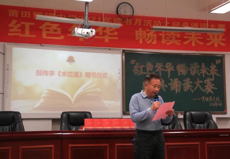 4月22日,我市著名作家、莆田二中校友倪偉李先生在老書記涂雨的陪同下,來到我校并贈(zèng)送了300本個(gè)人詩集《木蘭溪》,校長陳培基代表學(xué)校接受了贈(zèng)送。倪偉李先生是莆田二中2002屆高中畢業(yè)生,現(xiàn)為《莆田僑鄉(xiāng)時(shí)報(bào)》編輯、福建省作家協(xié)會(huì)青年作家委員會(huì)委員、莆田市作家協(xié)會(huì)秘書長,出版主編了多部有影響力的書籍,并且在《詩刊》、《新世紀(jì)文學(xué)選刊》、《詩歌月刊》、《福建文學(xué)》等報(bào)刊雜志發(fā)表作品900多篇?!赌咎m溪》是他近期創(chuàng)作出版的首部以詩歌形式謳歌我市母親河木蘭溪的主題詩集,鮮明反映了時(shí)代的主旋律,社會(huì)反響熱烈。